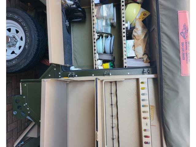 Companion with 360 degree awning, L shape awning, 5 x 7 tent all with their own side panels, 2 x ground sheets, gas stove and gas bottle, geyser with water tank, microwave. jerry cans, spare wheel with braai grid, sleeps 4-5, always garaged and not done more than 5000 km. Price negotiable.