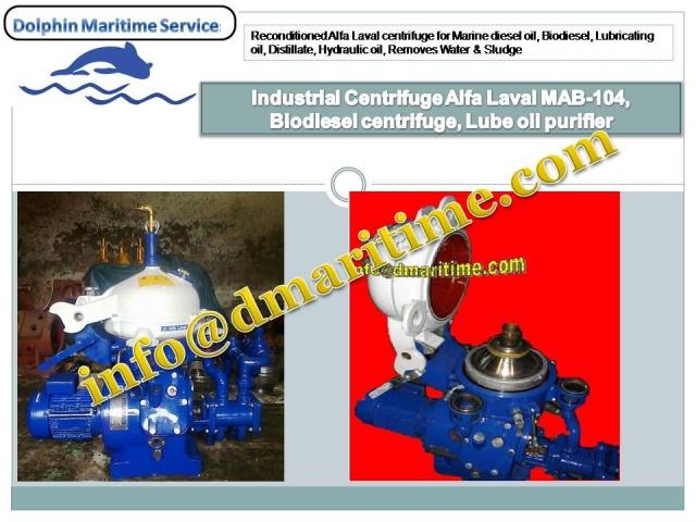 Reconditioned Alfa Laval centrifuge for Marine diesel oil, Bio diesel, Lubricating oil, Distillate,Hydraulic oil, Removes Water & Sludge