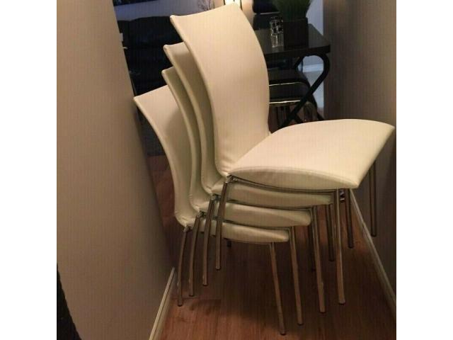 4 White Leather Chairs from Mobler Furniture