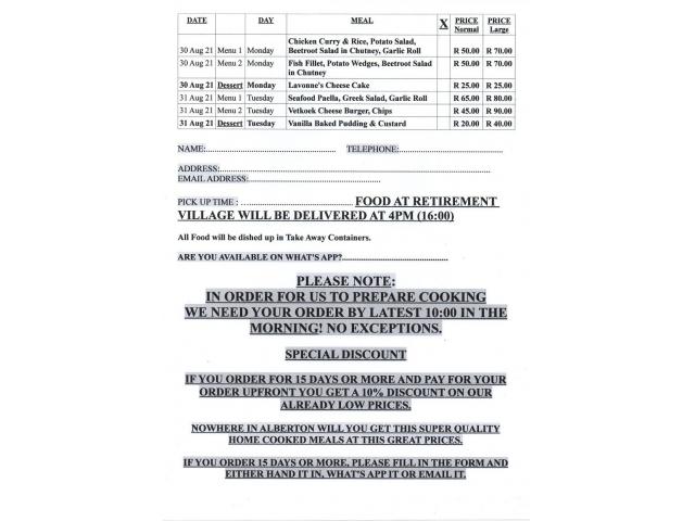 Monday - Thursday : 2 Different Menu's with the option of Dessert every day.