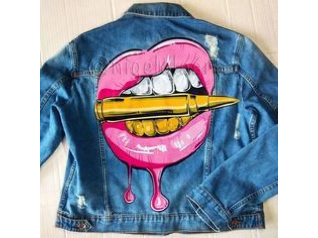 I redesign jeans and jackets, I paint on Jeans and other clothes, Sell painting, well painting, shoes, and bags painting WhatsApp me at +27672270980,